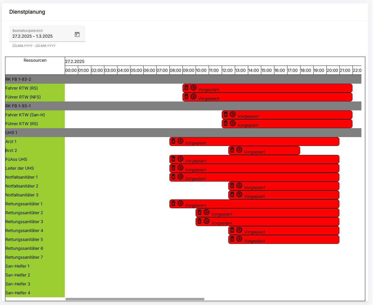 Wenn nicht mit der Dienstplanung gearbeitet werden soll, kann optional auch einfach die Pflichtfunktion aktiviert werden, dann ist diese Funktion immer zu besetzen um eine Unfallhilfsstelle einsatzbereit melden zu können.